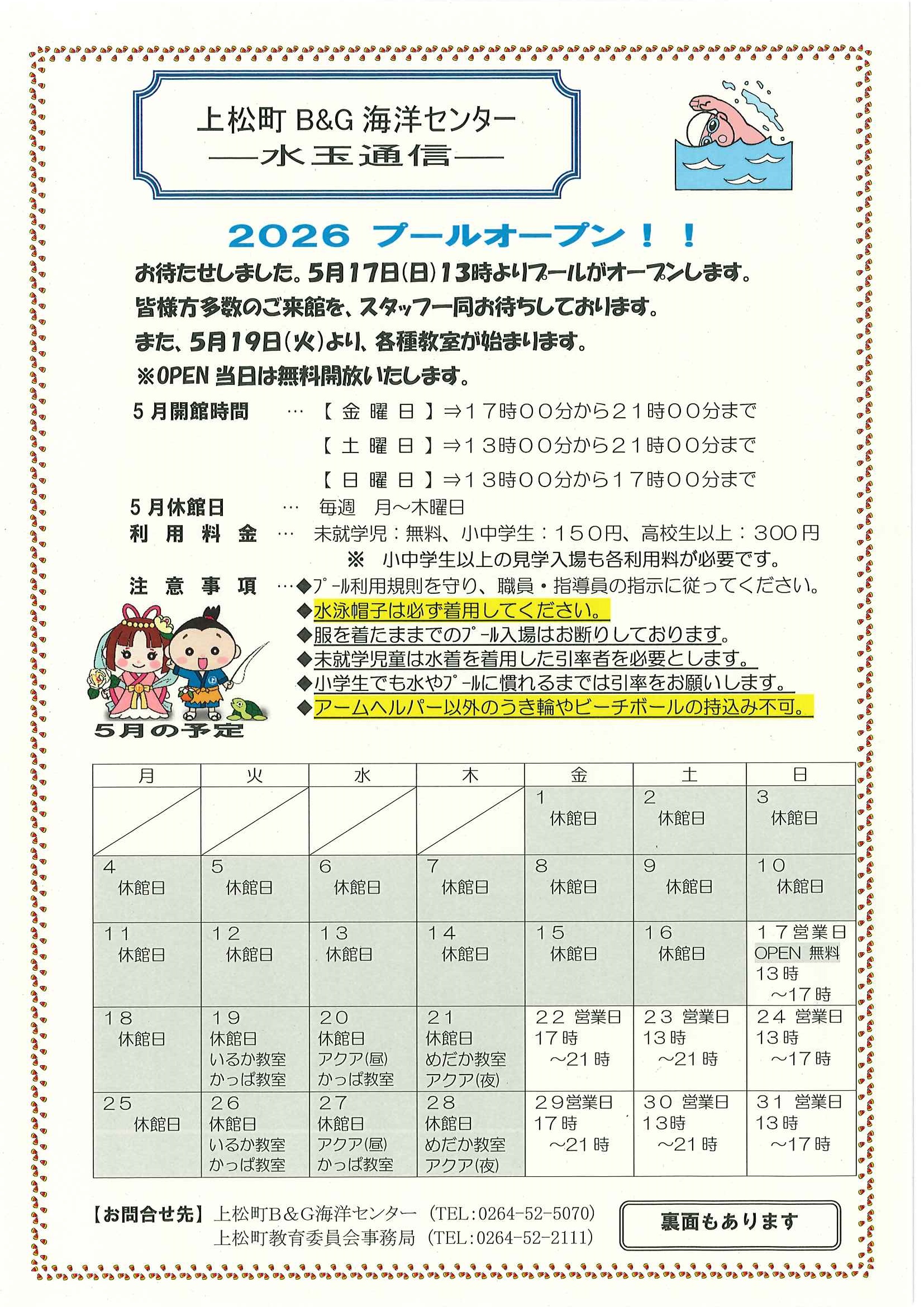 - 令和8年度 B&G海洋センター営業開始します。(5月17日のオープン初日は入場無料日です!!!)