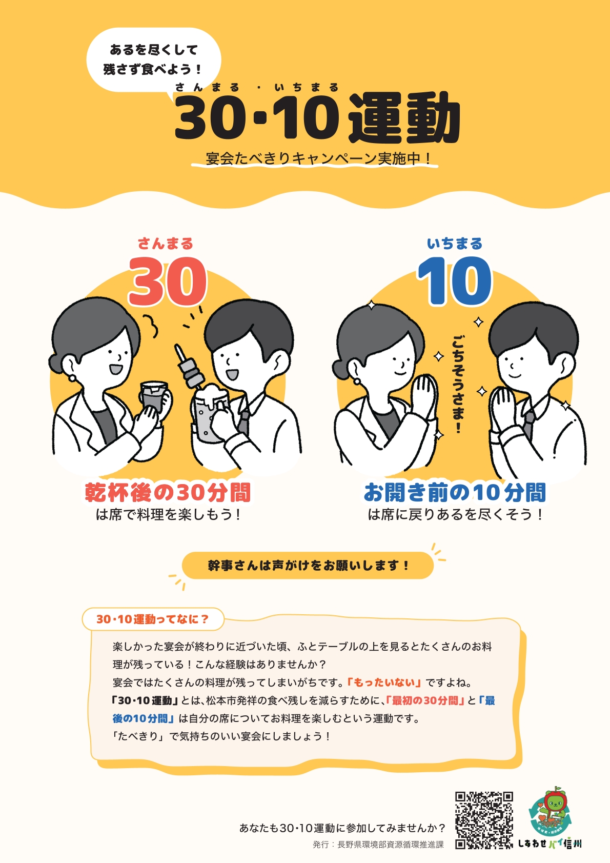 食品ロス削減を目的とした「残さず食べよう!30・10運動」にご協力ください